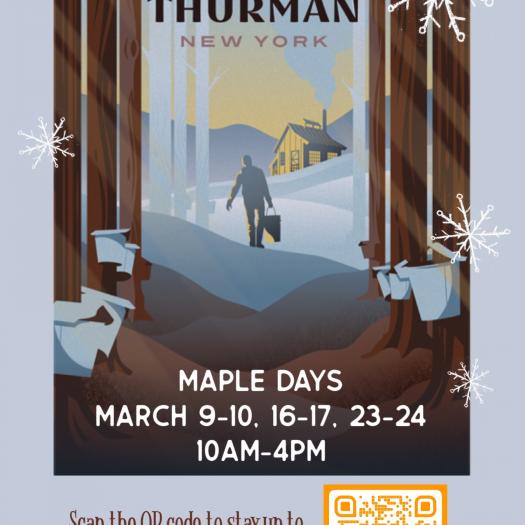 Thurman Maple Days, 3 weekends, Saturdays and Sundays in March. Minutes from Lake George Village and Northway Exit 23. Follow routes US 9 and NYS 418 to Thurman, and watch for arrow signs at significant corners to find each site. Self-guide to free tours of Thurman sugarhouses, a family sawmill, acclaimed goat and sheep cheese, dairy and the Maple Craft Show with local artisans. Tastings, talks, wagon rides, demonstrations & kids activities. This event is made possible, in part, by Warren County occupancy tax dollars grated by the Town of Thurman.